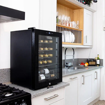 The Subcold Viva 20 is a modern Table-Top Wine Cooler Fridge for the Wine Connoisseur. Stylish, sophisticated, and sized to accommodate up to 20 standard 75cl wine bottles, this premium wine fridge is fully automatic to keep your vino perfectly chilled, and features a smart-touch digital controller for temperature adjustment from 3°C to 18°C (+/- 2°C).