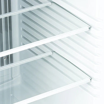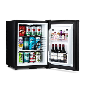 This compact model measures [W] 402x [D] 482 x [H] 545 mm with an internal net storage volume of 40L. Behind the solid foamed door there are 2 removable internal glass shelves for storage of all your assorted bottles, cans, wine, snacks etc. This fridge also features a bright white LED light and is lockable to keep all your favourites safe at no extra cost! [2 Keys supplied].