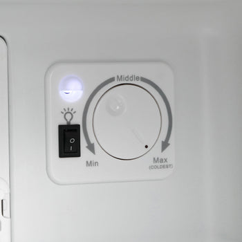 This compact model measures [W] 400x [D] 422x [H] 352 (mm) with an internal net storage volume of 20L. Behind the solid foamed door there is 1 removable internal glass shelf for storage of all your assorted bottles, cans, snacks etc. This fridge also features a bright white LED light and is lockable to keep all your favourites safe at no extra cost! [1 Keys supplied].