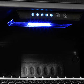 Illuminate your collection with the internal LED light, easily operated by a touch light switch. The black thin frame glass door, crafted with tempered double glazing, offers durability and a stylish look. The black aluminum alloy door handle complements the sleek design, while the integrated door lock and keys provide added security for your beverages.