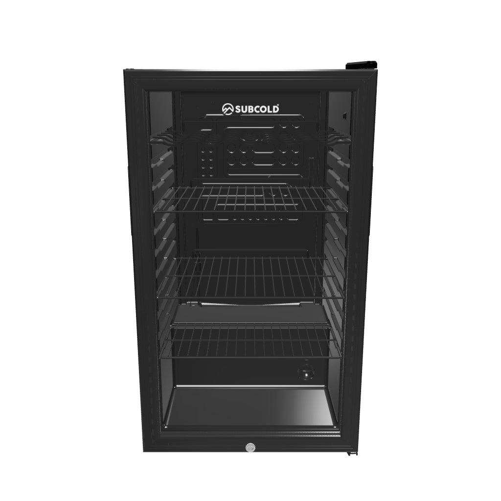 A brand new addition to the Subcold collection, the black Super 85 beer fridge has an impressive total capacity of 85 litres. It has a temperature range of 3°C to 18°C (+/- 2°C), and it is designed to accommodate up to 80 cans and 5 bottles of wine. Ideal for beers, soft drinks, craft brews, and even snacks, it is outfitted with four height-adjustable chrome wire shelves and it has a tempered glass door that allows you to see inside at a glance.