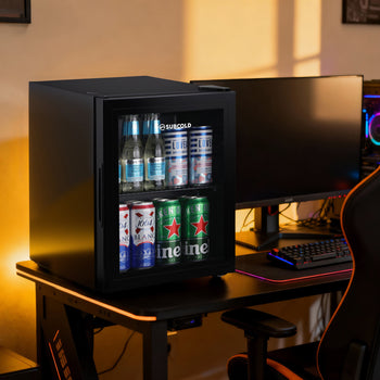 Sleek and modern, the double-glazed glass door and black interior/exterior add a stylish touch to any space. Whether it’s in your man cave, home office, or living room, it’s a smart addition that looks great while keeping your drinks chilled. The internal LED lighting automatically switches on when you open the door, so you’ll always find what you’re looking for—even during late-night gaming marathons!