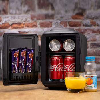 The Mini Fridge is compact and portable with the dimensions of 185W x 255D x 270H mm. It has an internal storage of 4 litre allowing easy storage of up to 6 standard 330ml cans. Behind the durable matt finished door is 1 removable internal shelf which can be configured to your convenience.