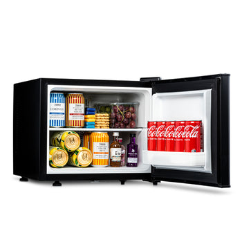 This compact model measures [W] 400x [D] 422x [H] 352 (mm) with an internal net storage volume of 20L. Behind the solid foamed door there is 1 removable internal glass shelf for storage of all your assorted bottles, cans, snacks etc. This fridge also features a bright white LED light and is lockable to keep all your favourites safe at no extra cost! [1 Keys supplied].