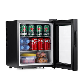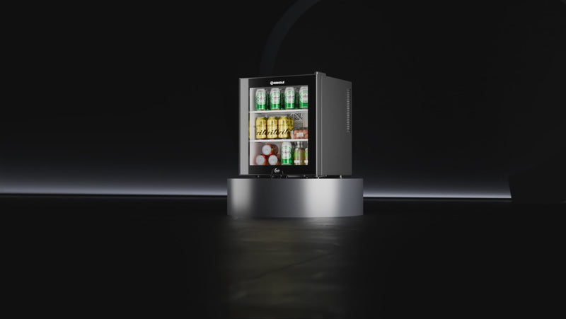 The double-glazed glass door adds a sleek, modern touch to the fridge's aesthetic, offering a clear view of the contents while ensuring excellent insulation. Additionally, the fridge is lockable with a key, giving you peace of mind that your items are safe and secure. Operating at a low noise level of 41dB, the Aire30-G is quiet enough to be placed in bedrooms or offices without causing disruption.